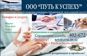 ООО "ПУТЬ К УСПЕХУ" СЕВЕРО-КАВКАЗСКИЙ ИНФОРМАЦИОННО-СПРАВОЧНЫЙ, РЕКЛАМНЫЙ ЦЕНТР.