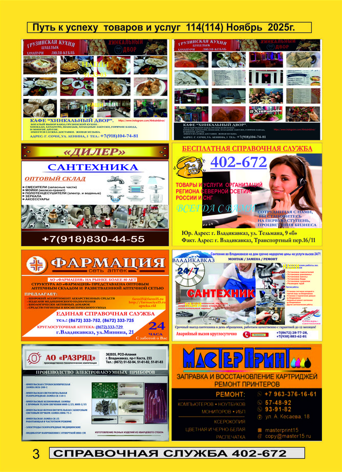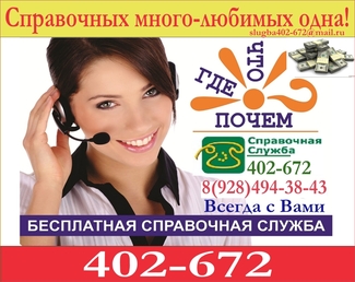 "Служба 402-672", в журнале "Путь к успеху" товаров и услуг, на сайтах, просьба заполнить данную графу.